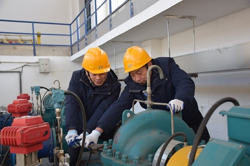為保障嚴(yán)寒天氣下調(diào)水的安全穩(wěn)定,鄒平仁源周密部署、積極準(zhǔn)備,全力加強(qiáng)預(yù)報(bào)預(yù)測、巡查防守和應(yīng)急準(zhǔn)備。做好清淤工作,組織工作人員開展了胡樓引黃泵站攔污柵調(diào)水前清淤,同時(shí)組織檢修人員對潛水軸流泵進(jìn)行全面檢測維保,確保引水工作順利,引水水量達(dá)標(biāo)。加強(qiáng)預(yù)報(bào)預(yù)測,中控室全面把控各項(xiàng)數(shù)據(jù)監(jiān)測,通過自動化調(diào)度和信息化系統(tǒng),緊盯氣溫、水溫及進(jìn)水泵站進(jìn)水情況,保障泵站設(shè)備運(yùn)行安全穩(wěn)定。保障巡查防守,加強(qiáng)對引黃渠道的巡查力度,安排專人每日往返60多公里的黃河干渠,進(jìn)行河道巡查、測流等保障任務(wù),并有序開展河道破冰除冰工作,及時(shí)處理因持續(xù)低溫導(dǎo)致的渠道過流能力下降等問題,保證渠道過水暢通,確保調(diào)水工作運(yùn)行有序。