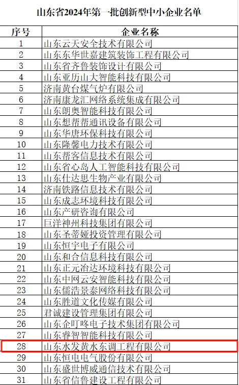近日,山東省工業(yè)和信息化廳公示了山東省2024年首批創(chuàng)新型中小企業(yè)名單,黃水東調公司成功入選。