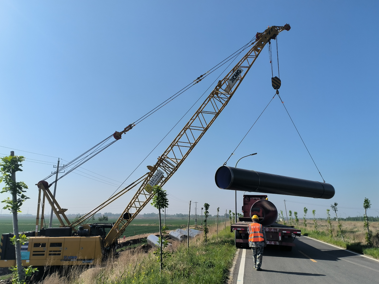 管道材料的供應(yīng)一直是制約著工程的推進速度的關(guān)鍵問題,復工儀式后,工程指揮部積極與管材供應(yīng)廠家溝通,積極籌備支付材料款項,安排專人負責協(xié)調(diào)對接,緊密配合施工,保證管材按時、足量供應(yīng),保障了施工段的全面鋪開和工程按期推進。